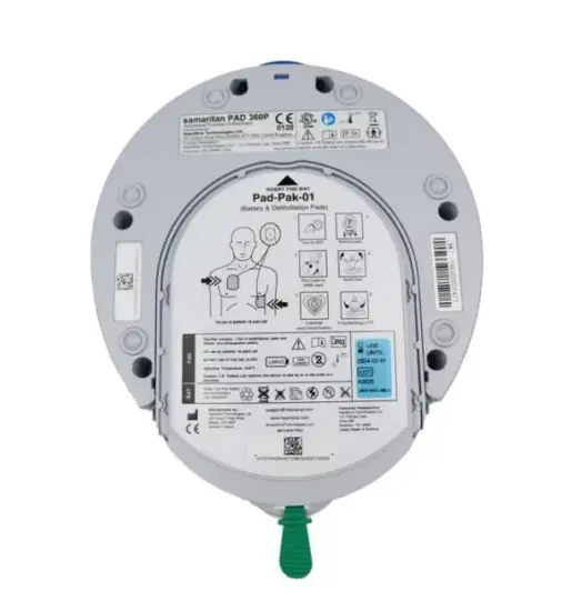 Le PadPak adulte est le kit qui contient le pack de piles et d’électrodes pour les défibrillateurs Samaritan PAD. Sa durée de vie est de 4 ans, il peut administrer minimum 30 chocs de 200J. Avec un câble d’un mètre de long, une surface active du gel de 100cm2, il est destiné à secourir une victime adulte. Le positionnement des électrodes est antérolatéral, et la pile est fabriquée à partir de lithium-dioxyde de manganèse, délivrant plus de 60 chocs à 200J/18V.